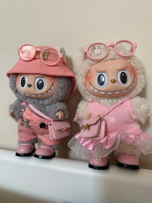 Labubu Hermes Designer Clothes - Pink Overalls