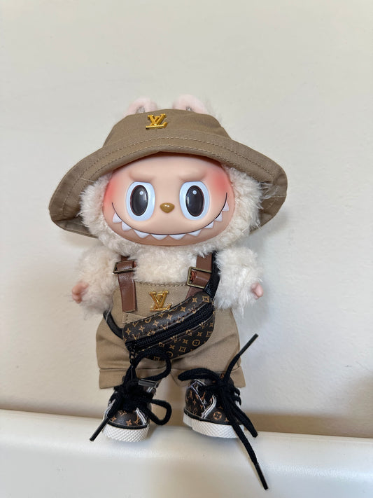 Labubu LV Designer Clothes - Khaki Overalls